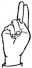 На ћирилици написано МИОДРАГ ЦМИЉАНИЋ састоји се из 15 слова [?]. Исписано ћириличном једноручном азбуком за глувонеме: